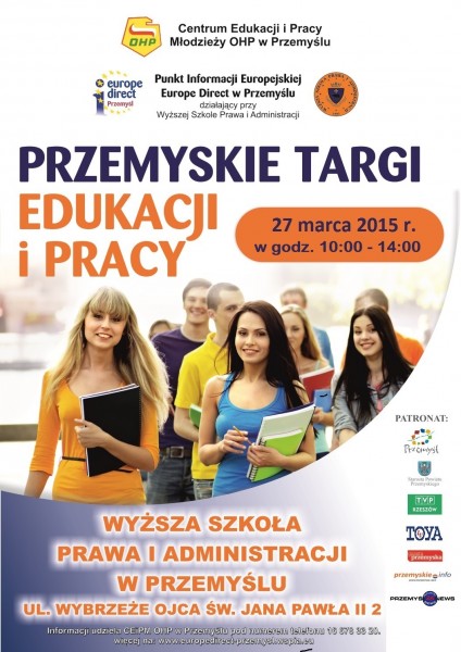 Przemyskie Targi Edukacji i Pracy odbędą się w najbliższy piątek 27 marca w siedzibie Wyższej Szkoły Prawa i Administracji w Przemyślu przy ul. Wybrzeże Ojca Świętego Jana Pawła II 2. Do odwiedzania stoisk wystawców zapraszamy w godzinach od 10:00 do 14:00.