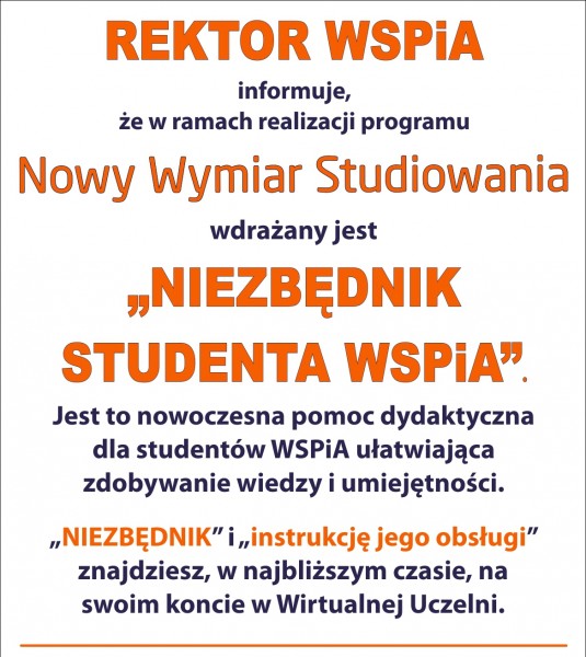 Szczegóły dotyczące „NIEZBĘDNIKA” i „instrukcję jego obsługi” wszyscy studenci mogą znaleźć na swoim koncie w Wirtualnej Uczelni.