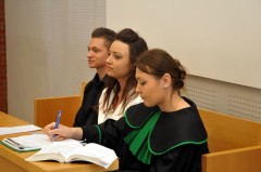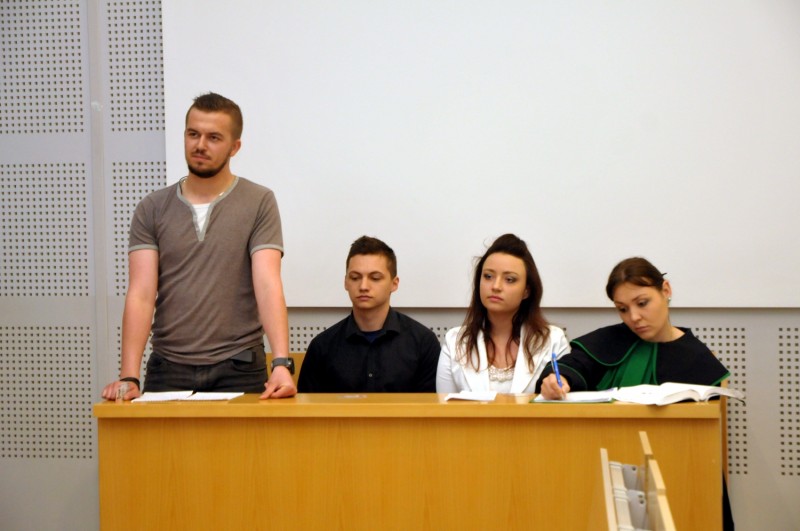 Dodaje, że wymyślona na potrzeby symulacji sprawa dotyczyła trójki młodych ludzi. _ Jest to Monika D. oskarżona o próbę wręczenia łapówki, Kamila C., który stanął przed sądem pod zarzutem próby skorumpowania wykładowcy i zlecenia pobicia go. Trzeci oskarżony to Grzegorz Ś., któremu zarzucono podbicie jednego z wykładowców WSPiA. W czasie rozprawy staraliśmy się ustalić, jak doszło do próby „przed-sesyjnego” przestępstwa – mówi Joanna Pełdiak.