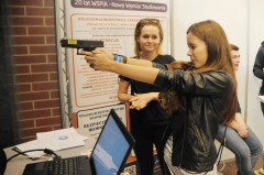 Na stoisko WSPiA podczas tegorocznego Salonu Maturzystów miesięcznika „Perspektywy” cały czas przychodzili uczniowie, którzy w tym roku zdawać będą maturę. Wśród nich były m.in. Jagoda i Ola – Bardzo podoba mi się Wasze stoisko i atrakcje, które zostały przygotowane. Mamy już pamiątkową kartę daktyloskopijną. Teraz czekamy jeszcze na trening strzelecki na Strzelnicy Elektronicznej, a później chcemy zagrać w grę „Chomik Maciej”. Nasz kolega już grał i mówił, że warto spróbować swoich sił, sterując swoim ciałem latającym Chomikiem. Zainteresowałyśmy się stoiskiem WSPiA, bo chcemy studiować w Rzeszowie. W tym mieście są bardzo dobre warunki do studiowania. Najbardziej jesteśmy zainteresowane studiami prawniczymi, a wiemy, że ten kierunek w Waszej Uczelni jest na bardzo wysokim poziomie – mówią Jagoda i Ola.
