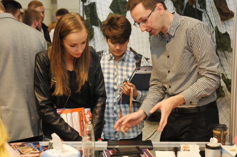 Z kolei Michał, Maturzysta z Jasła miał wiele pytań dotyczących zasad rekrutacji i studiowania w WSPiA. – Od studentów na stoisku dostałem informator i ulotki dotyczące WSPiA. Zabieram je ze sobą do domu i wieczorem będę się zastanawiać. Chcę zorientować się, jak dokładnie wygląda rekrutacja i jakie są wymagania. Pytałem studentów o to, jakie przedmioty wymagane są na maturze i kiedy należy składać dokumenty. Studenci udzielili mi bardzo szczegółowych informacji. Przed przyjściem na stoisko WSPiA zastanawiałem się nad kierunkiem „prawo”. Po rozmowie ze studentami wybiorę chyba jednak „bezpieczeństwo wewnętrzne”. Moje zainteresowania są związane z pracą w Wojsku, Policji lub Straży Granicznej, a te studia w WSPiA najlepiej przygotowują do takiej pracy. Uczelnia ma świetną infrastrukturę i doskonałą kadrę. Dlatego jestem przekonany, że od października przyszłego roku będę studentem WSPiA – mówi Michał.
