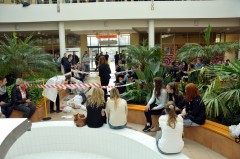 Jednym z ciekawszych wydarzeń podczas Tygodnia Integracyjnego dla studentów pierwszego roku w WSPiA były symulowane oględziny miejsca zdarzenia. Symulacja odbyła się we wtorek 6 października 2015 r. w Patio Uczelni. Podczas spotkania z członkami Koła Naukowego Kryminalistyki i Kryminologii nowi studenci mogli zobaczyć, jak wygląda praca technika kryminalistycznego. Na uczestników symulacji czekał specjalny manekin imitujący zwłoki kobiety. Nowi studenci WSPiA mogli poznać sposoby zabezpieczania śladów na miejscu przestępstwa. Dowiedzieli się także, że ważne są wszystkie ślady, które znajdują się wokół zwłok. Takie ślady pozwolą na ustalenie wszystkich okoliczności popełnienia przestępstwa oraz znalezienie sprawcy przestępstwa.