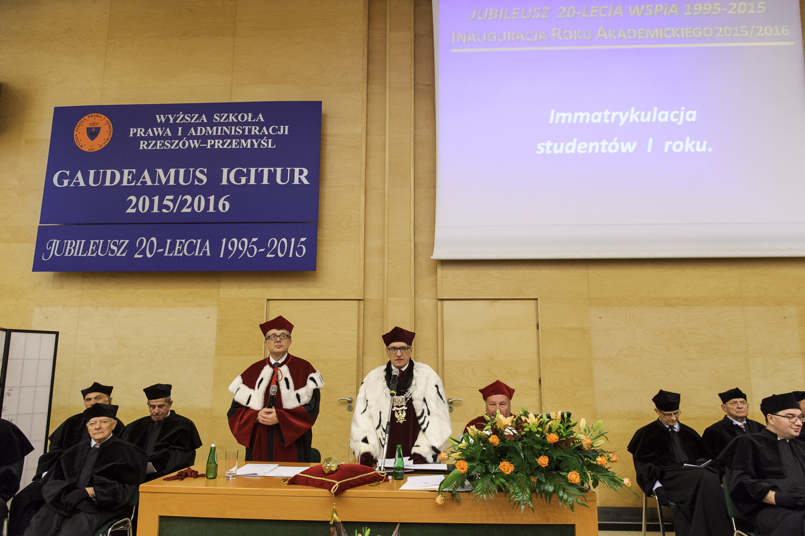 2015 rok to bardzo wyjątkowy rok dla naszej Uczelni – mówił podczas inauguracji prof. Jerzy Posłuszny, Rektor WSPiA. – Przez 20 lat naszej działalności zrealizowaliśmy wiele ambitnych projektów. Jednak pamiętać należy, że wszystko zaczęło się w Przemyślu, w którym w latach 90 było ogromne zapotrzebowanie na szkołę wyższą. Do utworzenia Uczelni zachęciły mnie ówczesne władze. Później przyszedł czas na utworzenie wydziału zamiejscowego w Rzeszowie. To była odpowiedź na wzrastającą popularność oferty edukacyjnej zaproponowanej przez WSPiA – mówił prof. Jerzy Posłuszny.