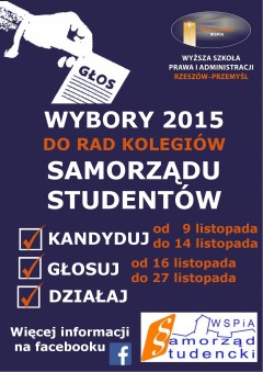 Studencie, pamiętajcie!!!! To właśnie Twój głos może zdecydować o tym, kto będzie dbał o Wasze interesy i skuteczność działania Samorządu Studenckiego Wyższej Szkoły Prawa i Administracji w Rzeszowie!!!