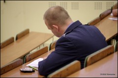Przed rozpoczęciem testu w imieniu władz Wyższej Szkoły Prawa i Administracji funkcjonariuszy powitał prof. Czesław Kłak, Dyrektor Kolegium Prawa WSPiA w Rzeszowie i jednocześnie członek Rady Polityki Penitencjarnej przy Ministrze Sprawiedliwości. Podkreślał on, jak niezwykle ważnym jest docenienie faktu, że funkcjonariusze Służby Więziennej pozostają grupą zawodową o jednym z najwyższych poziomów wykształcenia wyższego. – Życzę Państwu najlepszych możliwych wyników. Mam nadzieję, że będą Państwo nadal rozwijać swoje kompetencję i awansować. Mam również nadzieję, że będziemy się z Państwem spotykać na kolejnych wspólnych konferencjach organizowanych przez Służbę Więzienną i WSPiA. Zachęcam Państwa przy tej okazji do przygotowywania i wygłaszania referatów, przygotowywania artykułów naukowych, a być może i rozpraw doktorskich. Cieszę się, że do egzaminu przystąpiła tak liczna grupa funkcjonariuszy, którzy chcą podnosić swoje kwalifikacje – mówił prof. Czesław Kłak.