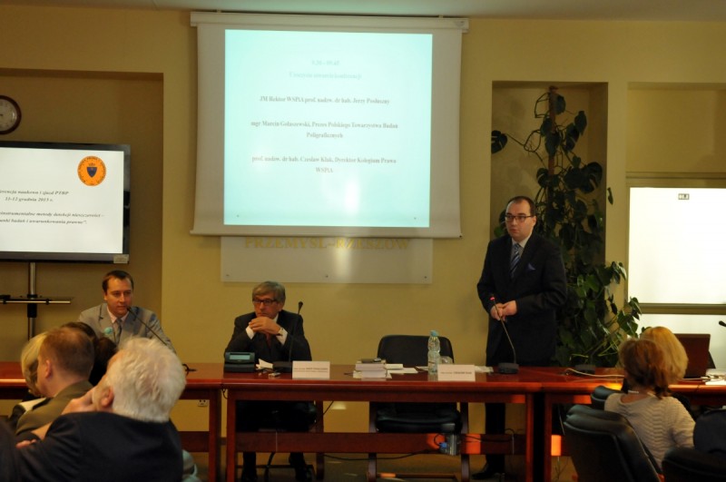 W konferencji uczestniczył m.in. prof. Jerzy Posłuszny, Rektor WSPiA oraz Marcin Gołaszewski, Prezes Polskiego Towarzystwa Badań Poligraficznych. Wśród prelegentów byli wykładowcy WSPiA m.in. prof. Czesław Kłak, mł. insp. w st. Spoczynku mgr Andrzej Bodzioch oraz Grzegorz Maciejowski – sędzia Sądu Okręgowego w Rzeszowie.