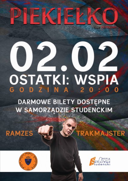 Podczas Studenckich Ostatków w WSPiA oprócz rezydenta klubu Piekiełko – DJ Ramzesa gościnnie zagra także DJ Trakmajster. Impreza odbędzie się w rzeszowskim Klubie Piekiełko. Znajduje się on przy ul. Piłsudskiego, na IV piętrze w Hotelu Rzeszów. Klub ma charakterystyczne odkryte, surowe sufity, sensualne obrazy, podstawy do stołów wykonane z pociętych wagonów, czy industrialne elementy skomponowane ze szlachetnymi skórami i drzewem. Wejście do klubu znajduje na parkingu górnym Galerii Rzeszów lub od ulicy Piłsudskiego windą, na poziom IV Hotelu Rzeszów.