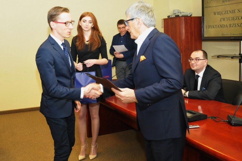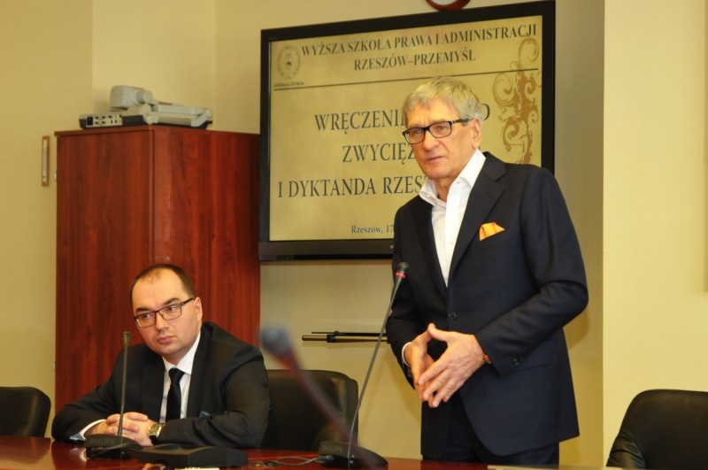 W czwartek 17 marca 2016 r. odbyło się wręczenie nagród i wyróżnień osobom, które najlepiej poraziły sobie z tekstem dyktanda. – Bardzo się cieszę, że wśród 10 nagrodzonych i wyróżnionych osób jest wielu studentów naszej Uczelni – mówił podczas wręczenie nagród prof. Jerzy Posłuszny, Rektor WSPiA. Od wielu lat staramy się zwracać uwagę studentów na to, jak ważne jest posługiwanie się poprawną polszczyzną. Wiem, że tekst dyktanda nie był łatwy i w dużej mierze dotyczył twórczości Henryka Sienkiewicza. 2016 rok jest rokiem tego wybitnego polskiego pisarza. Warto także pamiętać, że dyktando organizowane przez WSPiA to kolejne takie przedsięwzięcie, które rozszerza naszą funkcję kulturotwórczą – tłumaczył prof. Jerzy Posłuszny.