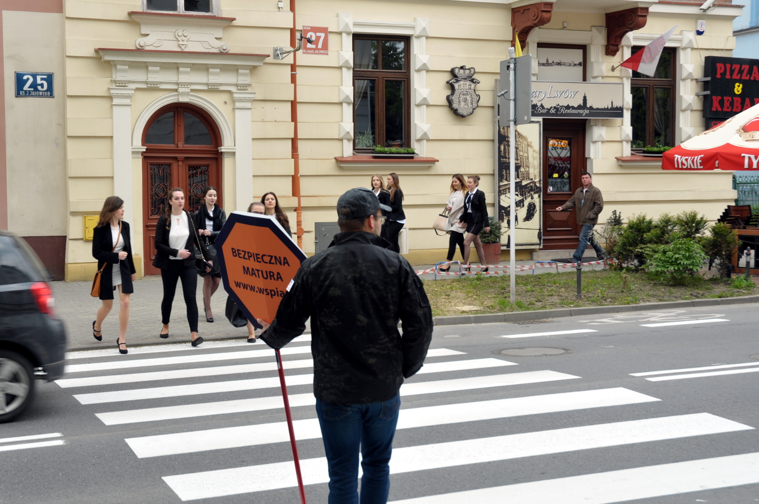 W środę 4 maja 2016 r. studenci WSPiA pojawili się na najważniejszych przejściach dla pieszych w okolicach szkół ponadgimnazjalnych w Rzeszowie. Dzień później studentów można było spotkać w Przemyślu, Jarosławiu, Krośnie, Jaśle, Dębicy, Mielcu i Tarnobrzegu. Studenci ubrani byli w mundury WSPiA i wyposażeni w specjalne znaki pomagające przeprowadzić pieszych przez drogę.