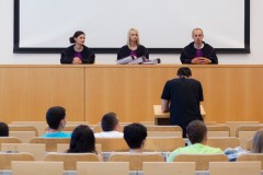 Ta część naszego kampusu przeznaczona jest dla kierunku „prawo” w WSPiA. W budynku znajdują się w nim dwie aule – na 400 i 200 osób, sale seminaryjne oraz sale językowe. Najważniejsza jest jednak „sala rozpraw”, w której nasi studenci prowadzą inscenizowane rozprawy sądowe. Korzystając z profesjonalnego wyposażenia sali, studenci wcielają się w role: sędziego, prokuratora lub adwokata. W tym budynku znajduje się także restauracja „W ogrodach”, w której studenci WSPiA mogą zjeść tanie, zdrowe i dobre obiady.