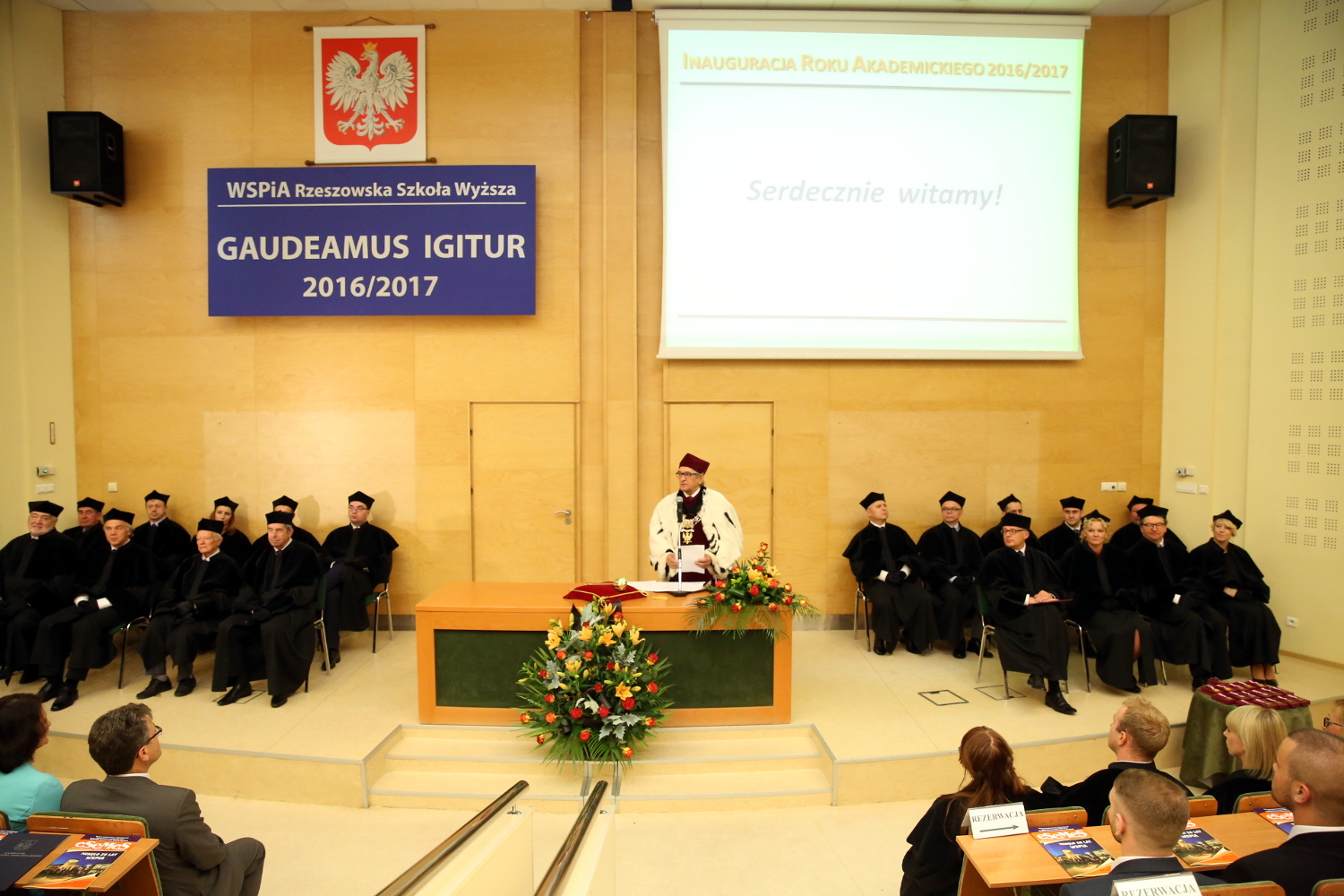 Rok akademicki 2016/2017 rozpoczynamy patrząc w przyszłość ze spokojem i optymizmem – powiedział podczas uroczystości prof. Jerzy Posłuszny, Rektor WSPiA Rzeszowskiej Szkoły Wyższe. – Studia w naszej Uczelni rozpoczyna ponad 5000 osób w tym blisko 2000 nowych studentów zarówno Polaków, jak i Ukraińców. Dzięki wprowadzonej reformie zarówno w obszarze dydaktyki, administracji i zarządzania Uczelnią widzimy, że studia w naszych murach ciągle cieszą się zainteresowaniem wśród kandydatów na studia. Są to zmiany, które pozwalają dostosować proces kształcenia i ofertę edukacyjną do potrzeb i wymagań ciągle zmieniającego się rynku pracy – powiedział prof. Jerzy Posłuszny.