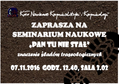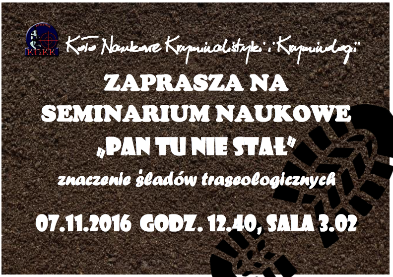 Organizatorem seminarium naukowego pt. „Pan tu nie stał – znaczenie śladów traseologicznych” jest działające w WSPiA Rzeszowskiej Szkole Wyższej Koło Naukowe Kryminalistyki i Kryminologii. W dyskusji uczestniczyć mogą wszystkie osoby zainteresowane tematyką poszukiwania i odkrywania różnych śladów pozostawianych na miejscu przestępstwa.