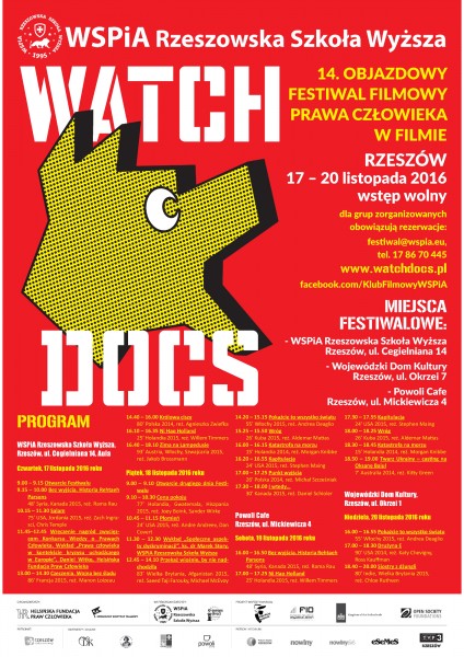 Program 14. Objazdowego Festiwalu Filmowego Watch Docs. Prawa Człowieka w Filmie.