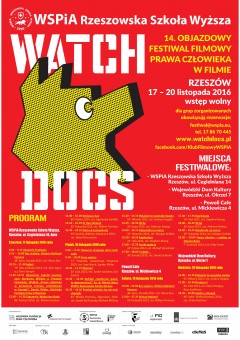 Tegoroczna X rzeszowska edycja Ogólnopolskiego Objazdowego Festiwalu Filmowego „Watch Docs. Prawa Człowieka w Filmie” odbędzie się w dniach od 17 do 20 listopada 2016 r. Impreza odbędzie się w czterech miejscach. Filmy z całego świata dotyczące praw człowieka będzie można zobaczyć w rzeszowskim kampusie WSPiA Rzeszowskiej Szkoły Wyższej, Wojewódzkim Domu Kultury, Liceum Ogólnokształcącym w Boguchwale oraz w kawiarni Powoli Cafe w Rzeszowie.