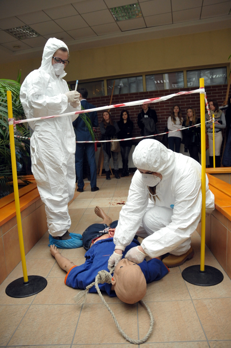 Dzięki zainscenizowanej sytuacji studenci mogli zobaczyć, jak wygląda praca technika kryminalistycznego. Poznali m.in. sposoby zabezpieczania śladów na miejscu przestępstwa. Dowiedzieli się także, że ważne są wszystkie ślady, które znajdują się wokół zwłok. Takie ślady pozwolą na ustalenie wszystkich okoliczności popełnienia przestępstwa oraz znalezienie sprawcy przestępstwa.