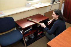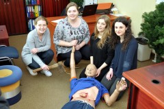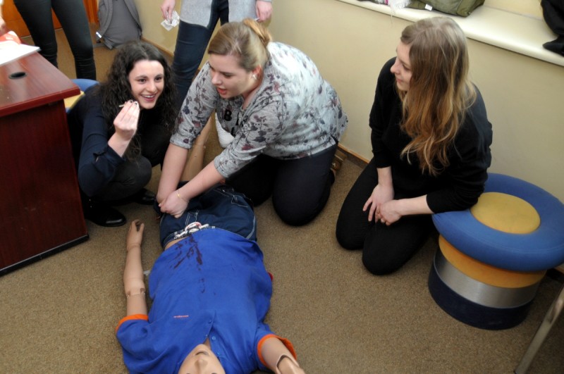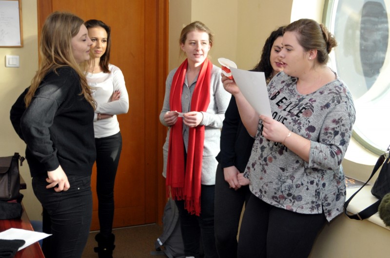 – Obie drużyny idąc za wskazówkami, trafiły do Klubu Studenckiego WSPiA, gdzie przy komputerach znajdowała się kominiarka, a na niej blond włos. Kolejna wskazówka to siedząca przy pokoju samorządu blondynka. Podchodząc do niej, studenci dostrzegli zwłoki mężczyzny. W tym miejscu rozpoczęła się II część Escape Room – opowiada Magdalena Trzaska.