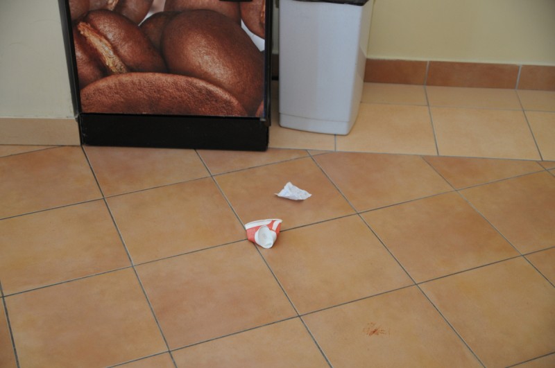 Druga drużyna na początku musiała podążać za krwawymi śladami butów, które prowadziły do automatu z kawą. Tam na zawodników czekał zmięty kubek po kawie z odbitą czerwoną szminką oraz kartka z napisem „idę na lepszą kawę”. Drużyna szybko odkryła, że kolejna wskazówka znajduje się w restauracji „W ogrodach” WSPiA. Przy kasie czekała na nich informacja, że „Danie Dnia to Cyber-Wątrupki”.