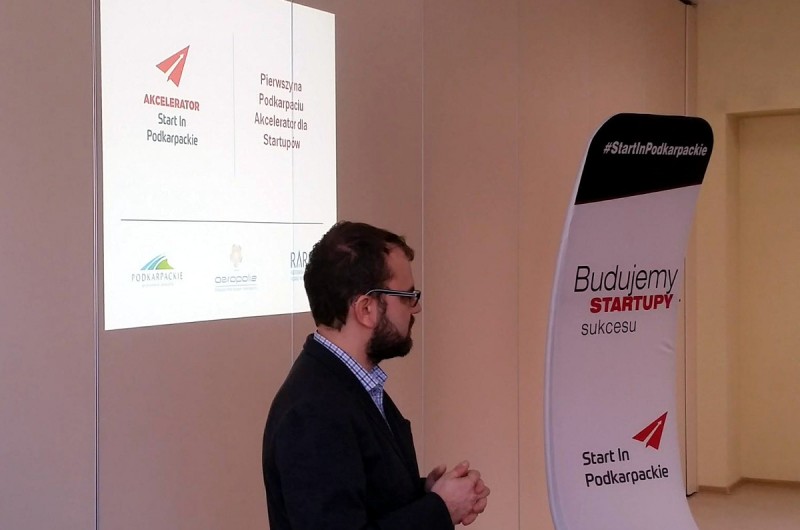 Podczas spotkania studenci WSPiA mogli także poznać projekt Start In Podkarpackie. Opowiadali o nim Jacek Smulski i Marek Rawski z Rzeszowskiej Agencji Rozwoju Regionalnego i AEROPLIS Podkarpackiego Parku Naukowo-Technologicznego. Start In Podkarpackie to inicjatywa, w ramach której RARR przy współpracy z Urzędem Marszałkowskim Województwa Podkarpackiego, lokalnymi przedsiębiorstwami, instytucjami i uczelniami wspiera społeczności startupowe oraz twórców startupów.
