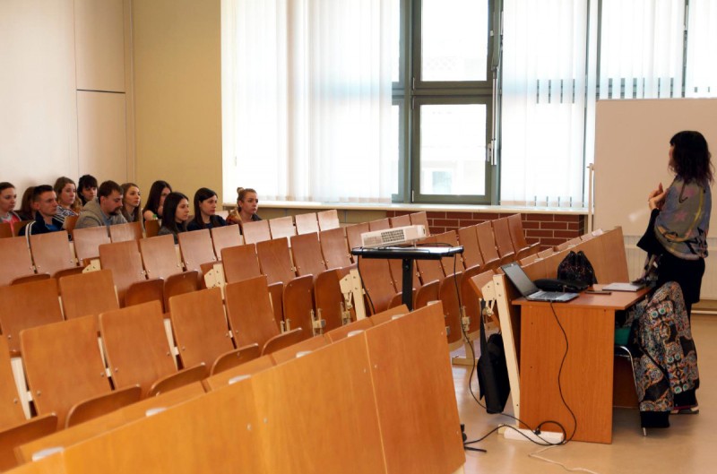 Podczas spotkania z Magdaleną Kocój z SRDF Clothing studenci mogli dowiedzieć się jakie problemy pojawiają się podczas tworzenia własnej firmy od podstaw. – Kilka lata temu stworzyłam portal czytajniepytaj.pl. Publikowałam artykuły o modzie, sztuce, artystach i muzyce. Dzięki ciężkiej pracy udało mi się pozyskać 30 tys. unikalnych użytkowników. Kolejnym etapem był sklep internetowy bierzniepytaj.pl. W pewnym monecie doszłam do wniosku, że sama też chcę produkować ciuchy. I tak zaczęła się moja praca nad własną marką – opowiadała Magdalena Kocój.