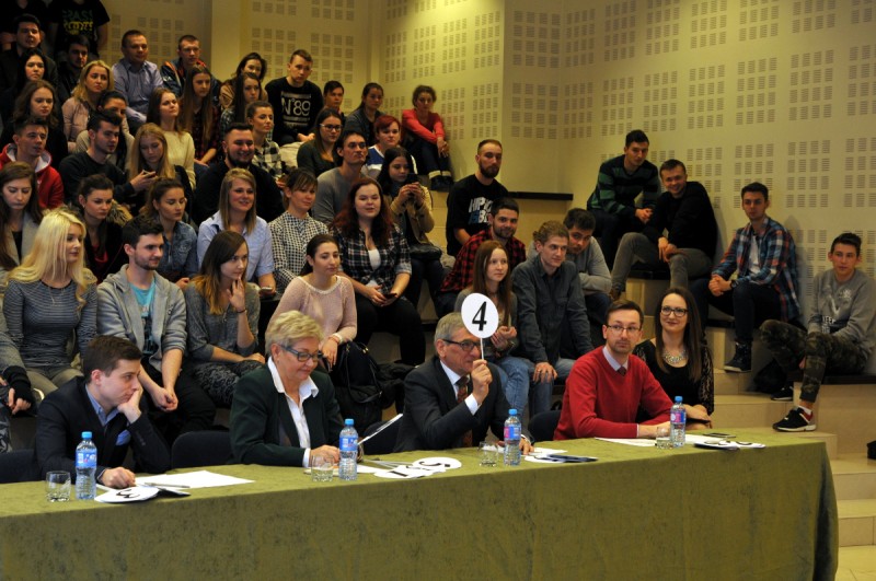 Do konkursu „The Voice of WSPiA” zgłosiło się 9 studentów Uczelni. Ich występy oceniało Jury w składzie: prof. Jerzy Posłuszny, Rektor WSPiA, prof. Katarzyna Kaczmarczyk-Kłak, Pełnomocnik ds. studenckich, mgr inż. Maria Data, Pełnomocnik ds. Administracji Uczelni, mgr Arkadiusz Szajna, wykładowca WSPiA (były członek chóru) oraz mgr Paweł Mroczka, kierownik działu Nowy Wymiar Studiowania w WSPiA (zawodowy tancerz). W ocenie końcowej liczyły się także głosy oddane przez publiczność.