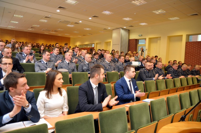 Temat konferencji jest bardzo ważny i nie bez powodu podejmuje go nasza Uczelnia – mówił podczas rozpoczęcia dyskusji prof. Jerzy Posłuszny, Rektor WSPiA Rzeszowskiej Szkoły Wyższej. – Nasza Uczelni od pięciu lat prowadzi nowatorski projekt pod nazwą „Bezpieczna Przyszłość”. Jest to inicjatywa, w ramach której realizujemy szereg zadań związanych z edukacją dzieci, młodzieży i studentów w zakresie szeroko rozumianego bezpieczeństwa i prawa. Prowadzimy m.in. Dziecięcą i Młodzieżową Akademię Prawa i Bezpieczeństwa, organizujemy panele eksperckie, staramy się prezentować zadania i role różnych służb mundurowych. Kolejnym etapem jest dyskusja na temat bezpieczeństwa stadionowego. Jest to temat niezwykle aktualny i wzbudzający różne emocje. Mam nadzieję, że uczestnikom dyskusji uda się znaleźć rozwiązania, dzięki którym na naszych stadionach i podczas imprez sportowych będzie bezpieczniej – mówił do uczestników konferencji prof. Jerzy Posłuszny, Rektor WSPiA.