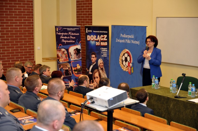 Konferencja na temat „Bezpieczeństwa Stadionowego” odbyła się pod patronatem Wojewody Podkarpackiego dr Ewy Leniart, Wicemarszałka Województwa Podkarpackiego Marii Kurowskiej oraz Komendanta Wojewódzkiej Policji w Rzeszowie nadinsp. dr. Krzysztofa Pobuty.