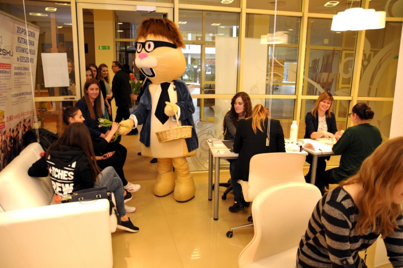 8 marca 2017 r. z okazji Dnia Kobiet Samorząd Studencki WSPiA Rzeszowskiej Szkoły Wyższej postanowił podarować wszystkim studentkom naszej uczelni wyjątkową atrakcję. Przez cały dzień w Uczelnianym Studiu Kosmetyki, Wizażu i Stylizacji Panie mogły skorzystać z relaksacyjnego masażu dłoni, twarzy i pleców oraz specjalistycznych zabiegów kosmetycznych. Mogły także zrobić sobie wieczorowy makijaż oraz wykonać manicure biologiczny lub hybrydowy. Wszystkie zabiegi wykonywała profesjonalna ekipa uczennice oraz nauczycielek z Zespołu Szkół Kształcenia Ustawicznego w Rzeszowie. Studentki WSPiA dostały także kwiaty od maskotki uczelnianej, czyli Chomika Macieja.