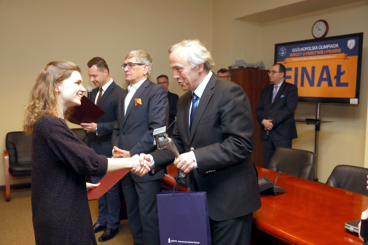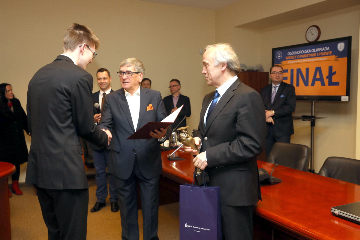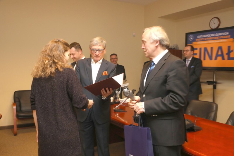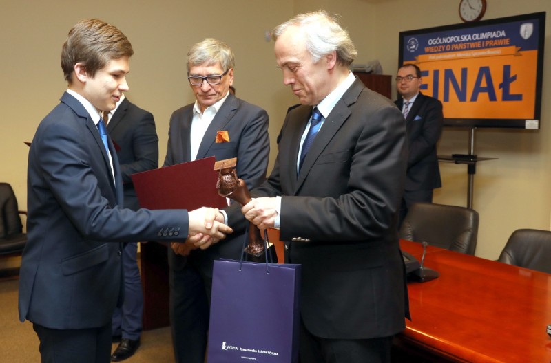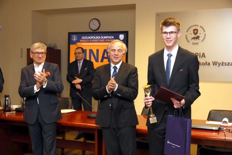 Nagrody najlepszym uczniom z całej Polski wręczyli prof. Jerzy Posłuszny, Rektor WSPiA Rzeszowskiej Szkoły Wyższej oraz prof. Andrzej Witkowski, Przewodniczący Komisji Centralnej Olimpiady.