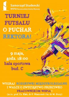 Turniej futsalu o Puchar Rektora WSPiA Rzeszowskiej Szkoły Wyższej podzielony został na dwa etapy. W pierwszym odbędą się rozgrywki międzykolegialne. Zwycięska drużyna stoczy walkę z pracownikami naukowymi i administracyjnymi WSPiA.