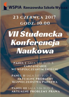 VII Studencka Konferencja Naukowa WSPiA odbędzie się w piątek 23 czerwca 2017 r. o godzinie 10:00 w kampusie WSPiA Rzeszowskiej Szkoły Wyższej.