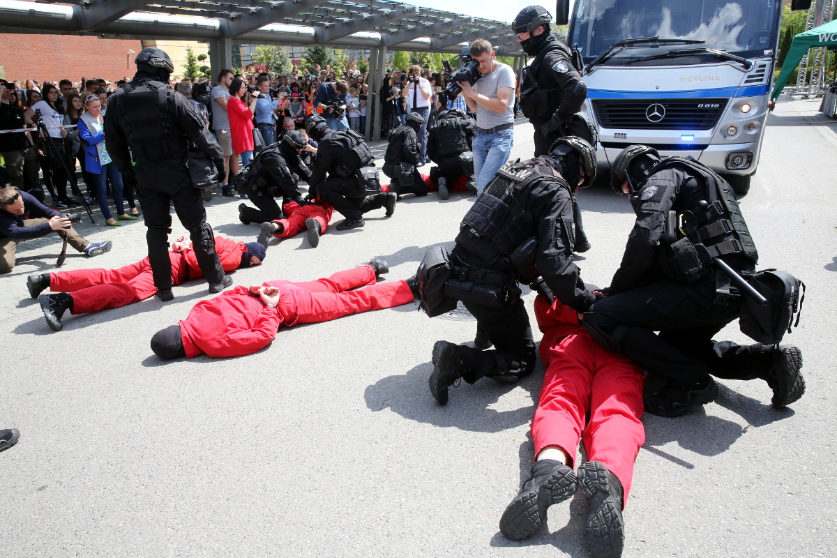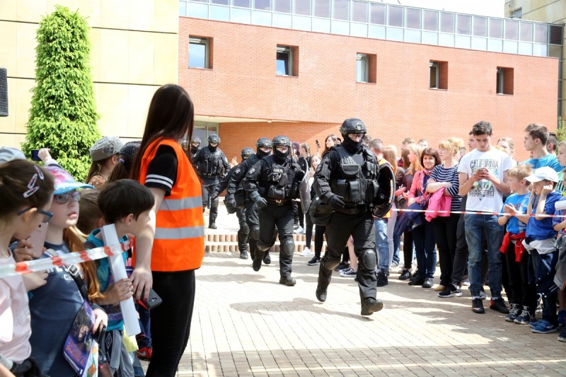 Imprezę rozpoczął o godzinie 10:00 koncert orkiestry wojskowej. Następnie w kampusie WSPiA można było zobaczyć specjalne pokazy przygotowane przez służby mundurowe. Służba Więzienna zaprezentowała dynamiczny pokaz tłumienia buntu więźniów w pojeździe konwojowym, a Komenda Wojewódzka Policji – pokaz minersko-pirotechniczny z wykorzystaniem robota. Uczestniczy Święta mogli wziąć udział w pokazach: współpracy Policji, Straży Pożarnej i Pogotowia Ratunkowego na miejscu wypadku drogowego, działania żołnierzy Wojsk Obrony Terytorialnej i gaszenia płonącego oleju oraz kontrolowanych wybuchów niebezpiecznych substancji. Odbył się także pokaz użycia siły fizycznej jako środka przymusu bezpośredniego, symulacja bezpiecznego hamowania przed przeszkodą oraz prezentacje psów służbowych.