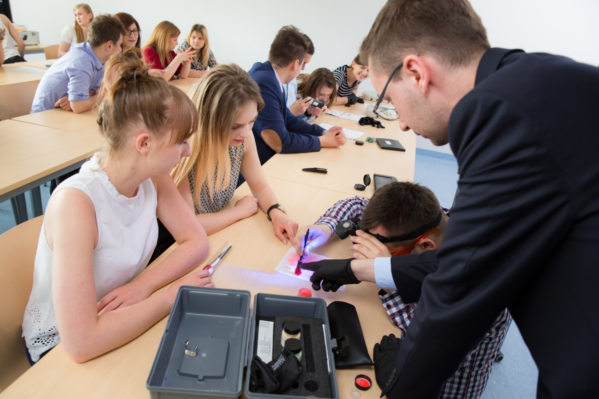 – Dla mnie najważniejsze jest jednak to, że oprócz „suchej” teorii w praktyce dowiedzieliśmy się jak badać zebrane ślady i w jaki sposób można je wykorzystać, szukając sprawcy przestępstwa. Uczyliśmy się także zasad działania i przeprowadzania badań przy użyciu wariografu, czyli tzw. wykrywacza kłamstw. Do naszej dyspozycji są profesjonalne mikroskopy do badań śladów biologicznych i wideospektrokomparator, służący do badania autentyczności dokumentów, w tym banknotów. Na takich samych urządzeniach prasuje np. Straż Graniczna – wylicza Izabela Łyszczarz.