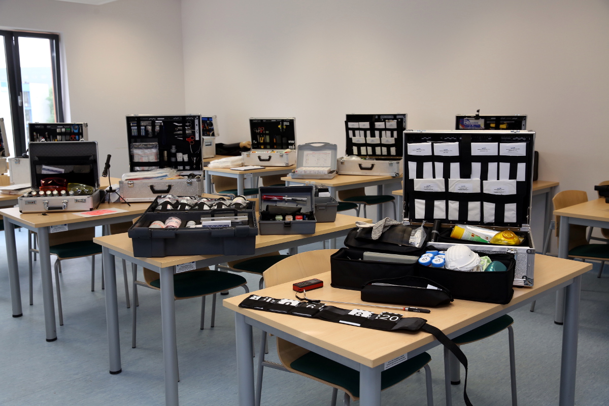 W Centrum są także profesjonalne zestawy symulacji ran i urazów, dzięki którym można pokazać, jak wygląda rana postrzałowa, cięta, kłuta, różne stopnie oparzeń czy też obrażenia odniesione w zdarzeniu komunikacyjnym. Jest też fantom służący do prezentacji tych ran. Ważną część wyposażenia stanowią również pomoce służące do nauki antropologii kryminalnej, odontologii kryminalistycznej czy pokazywania mechanizmu działania różnych środków odurzających i substancji psychotropowych. Są to całe szkielety człowieka, czaszki antropologiczne pokazujące ewolucję człowieka, ale również cechy budowy jego ciała. W Centrum znalazły się czaszki zarówno dorosłego człowieka, dziecka, jak i płodu. Są też szczęki i zęby służące do nauki identyfikacji człowieka na podstawie śladów uzębienia.