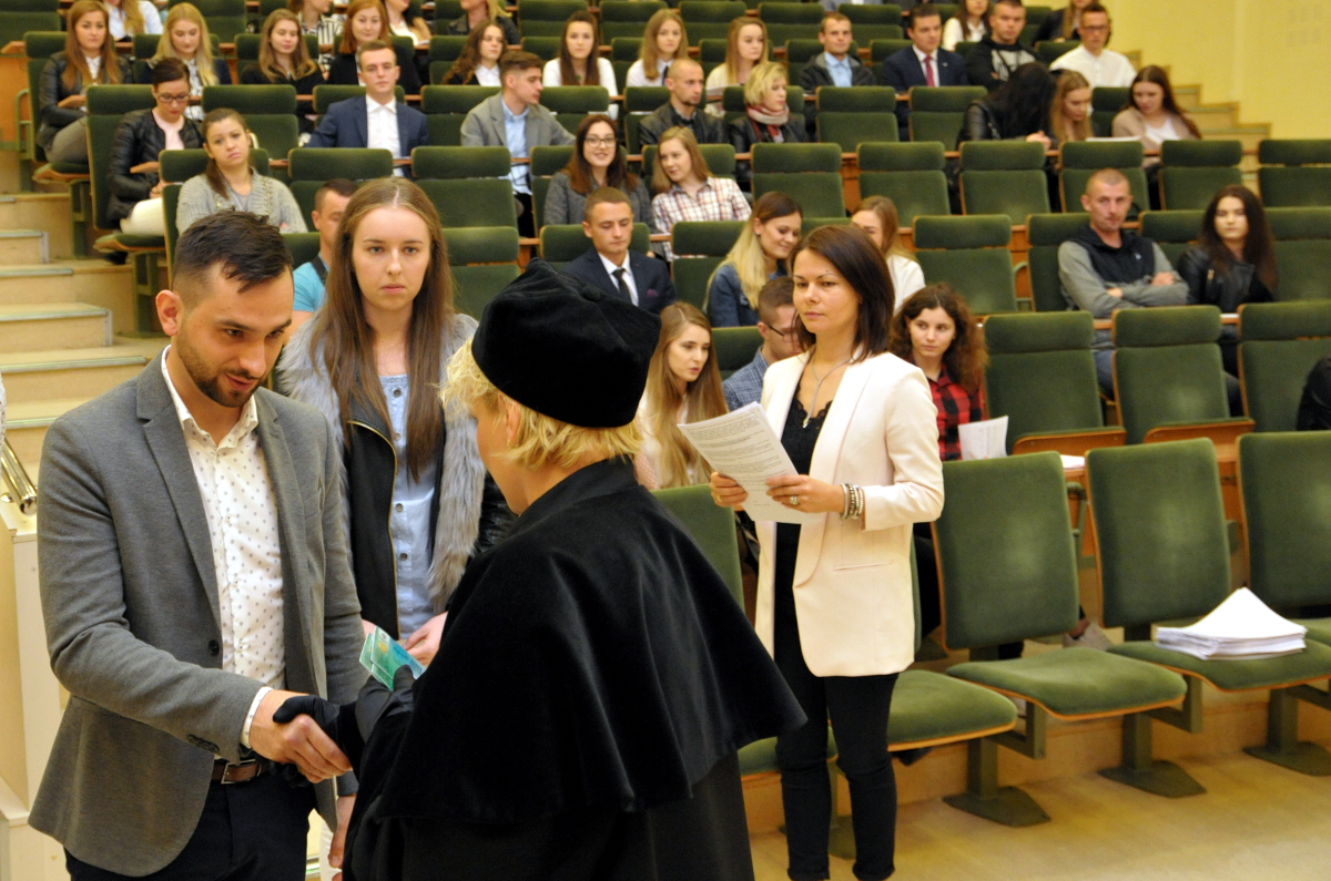 W uroczystej Immatrykulacji udział wzięły osoby rozpoczynające naukę na I roku studiów niestacjonarnych na kierunkach: „Administracja // Zarządzanie”, „Bezpieczeństwo wewnętrzne” oraz jednolitych studiach magisterskich na kierunku „Prawo”. Immatrykulacja to pierwsze ważne wydarzenie w życiu studenckim. W czasie uroczystości osoby rozpoczynające przygodę ze studiami otrzymały od Dyrektorów poszczególnych kolegiów legitymacje studenckie. Złożyły również „Ślubowanie studenta”.