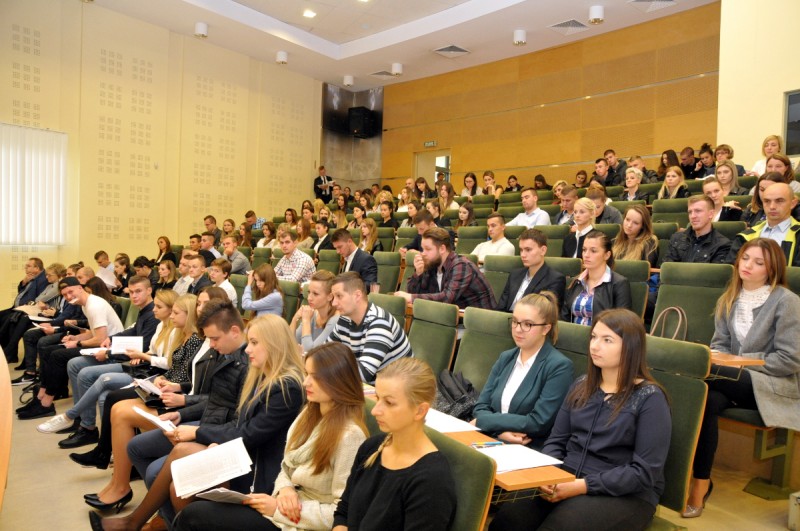 Rektor WSPiA dodał, że w tym celu Uczelnia wprowadza m.in. nowe metody nauczania i sprawdzania wiedzy. – Jest to np. Edukator, czyli asystent studenta – daleko idąca pomoc edukacyjna usprawniająca zdobywanie wiedzy. Druga propozycja to SBS, czyli nowoczesny i całkowicie inny sposób zaliczania efektów kształcenia. Powoli rezygnujemy z tradycyjnych egzaminów, które generuje stras i przypadkowość. W WSPiA stawiamy na systematyczną naukę i zaliczanie tematów w ramach danego przedmiotu. Mocny nacisk kładziemy także na naukę przez przykłady praktyczne – tłumaczył studentom prof. Jerzy Posłuszny.