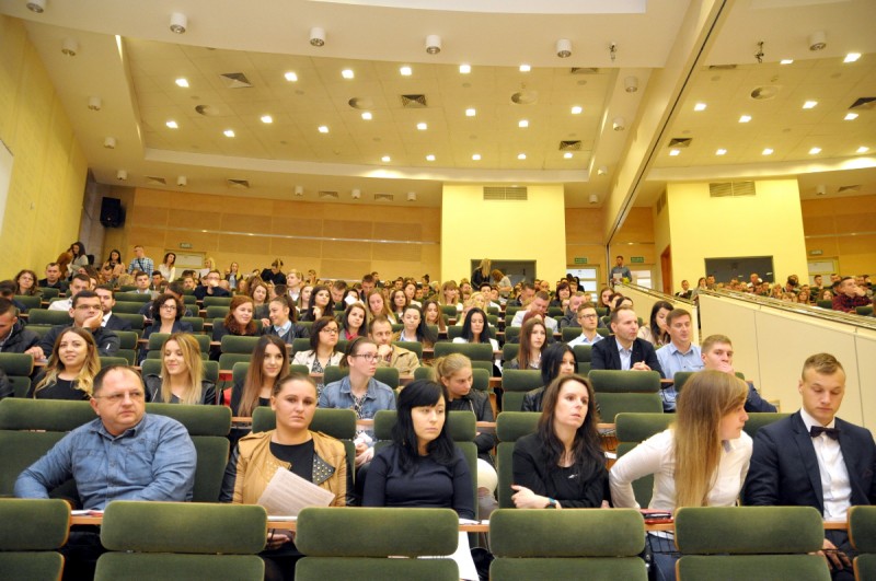 Nowych studentów WSPiA Rzeszowskiej Szkoły Wyższej w murach Uczelni powitał prof. Jerzy Posłuszny, Rektor WSPiA. – Dziś stają się Państwo częścią naszej społeczności akademickiej. Co roku bardzo mocno podkreślam, że ta społeczność akademicka działa na zasadach partnerstwa. Dlatego tam, gdzie konieczny jest dystans pomiędzy nauczycielem akademickim a studentem, to jest on uwzględniany, ale we wszystkich innych sytuacjach chcemy, żeby Państwo byli naszymi partnerami. Dziś Państwo powierzacie nam swoje kształcenie, a my obiecujemy, że będzie ono prowadzone na najwyższym poziomie. Każdy tu obecny miał inną motywację przy wyborze Uczelni i kierunku studiów. Jednak bez wątpienia każdy z Państwa jest tu, bo chce się uczyć. Dlatego my będziemy starali się stworzyć jak najlepsze warunku do studiowania tak, aby Państwo mogli rozwijać i wykorzystywać swój potencjał – mówił prof. Jerzy Posłuszny.