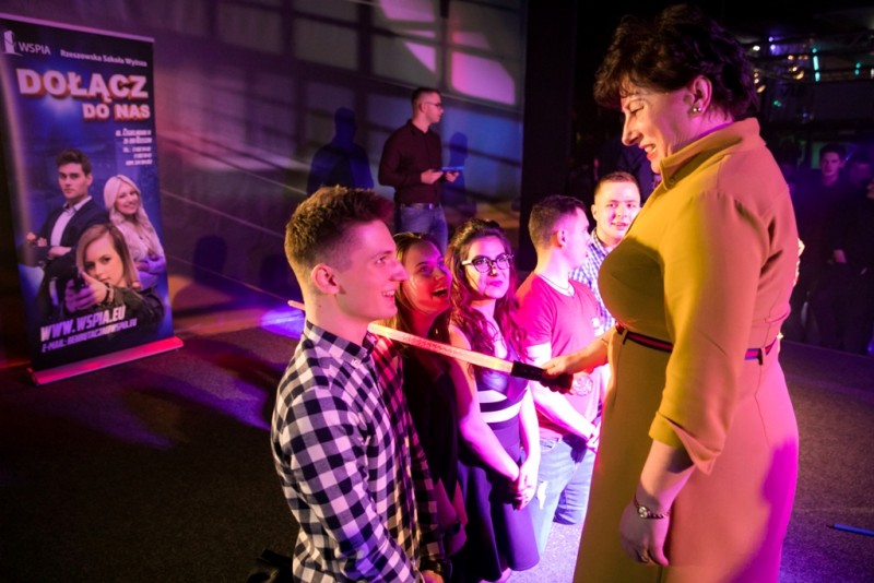 „… Przed Rektorem i Dziekanem, i wieczorem i nad ranem, i z radością i z mozołem szczerze kocham Wyższą Szkołę. Będę chodził na wykłady, od starszych zasięgnę rady, do fontanny też nie wejdę, a na obiad na dół zejdę …”. Tak podczas Otrzęsin przysięgali studenci pierwszego roku WSPiA Rzeszowskiej Szkoły Wyższej. Po złożeniu przysięgi tradycyjnie odbyło się również pasowanie na studenta. Tym razem z mieczem świetlnym na scenie pojawili się dr Bożena Sowa, Prorektor WSPiA oraz prof. Czesław Kłak, Dziekan Dyrektor WSPiA dr Mirosław Kurek, prodziekan WSPiA.