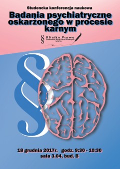 Podczas konferencji pt. „Badaniach psychiatrycznych oskarżonego w procesie karnym” swoje referaty przedstawią studenci aktywnie działający w Klinice Prawa. Będą to: Julia Baran, Kamila Wojczekowska, Sylwia Podosek oraz Wioletta Pelc.