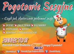 Dyżury w ramach „Pogotowia Sesyjnego” odbywają się w pokoju Samorządu Studenckiego (p. 2.02 na drugim piętrze w budynku A przy starym klubie studenckim).