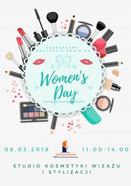 Dzień Kobiet w WSPiA Rzeszowskiej Szkole Wyższej odbędzie się w najbliższy czwartek 8 marca 2018 r. W tym dniu zapraszamy wszystkie Panie do Uczelnianego Studia Kosmetyki, Wizażu i Stylizacji (parter budynek A). W godzinach od 10:00 do 14:00 będzie można skorzystać z porad i zabiegów wykonywanych przez uczennice oraz nauczycielki z Zespołu Szkół Kształcenia Ustawicznego W Rzeszowie.