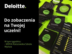 Podczas Deloitte Day w patio uczelni studenci będą mogli poznać działalności firmy Deloitte oraz zasady dotyczące rekrutacji w tej firmie. Głównym Deloitte Day tematem będą jednak praktyki i staże proponowane studentom m.in. WSPiA. Pracownicy jednej z największych firmy doradczych odpowiedzą na wszystkie pytania związane z rekrutacją i możliwością rozwoju w Deloitte. Przedstawią także pełną ofertę praktyk dla studentów różnych kierunków studiów.