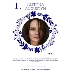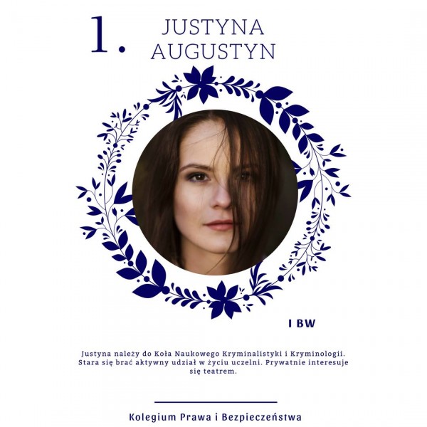 1. Augustyn Justyna – I rok studiów I stopnia na kierunku „bezpieczeństwo wewnętrzne”