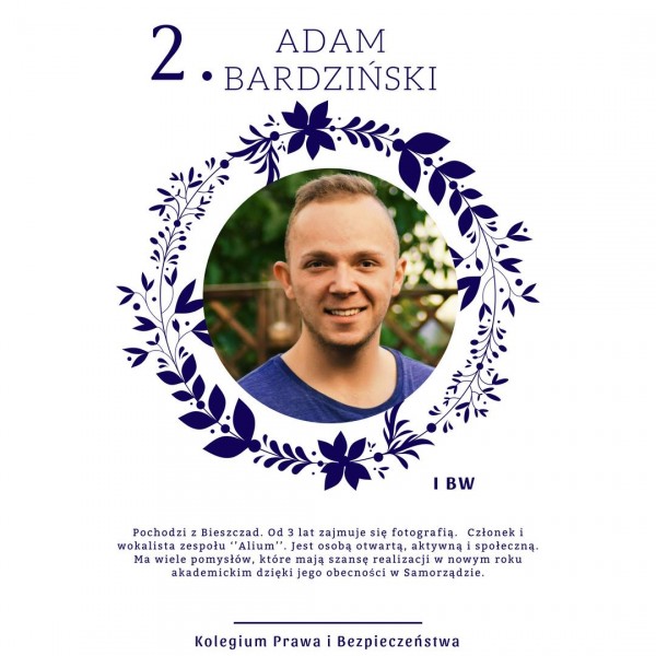 2. Bardziński Adam – I rok studiów I stopnia na kierunku „bezpieczeństwo wewnętrzne”