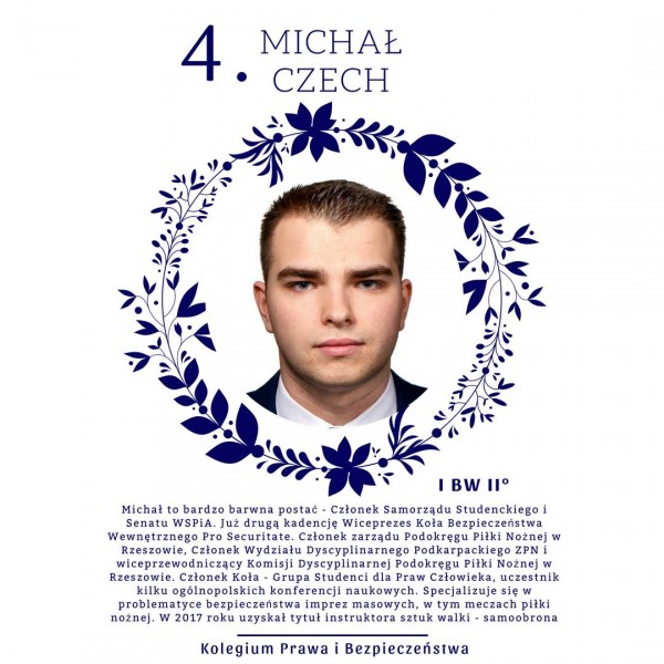 4. Czech Michał – I rok studiów II stopnia na kierunku „bezpieczeństwo wewnętrzne”