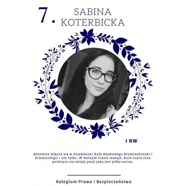 7. Koterbicka Sabina – I rok studiów I stopnia na kierunku „bezpieczeństwo wewnętrzne”