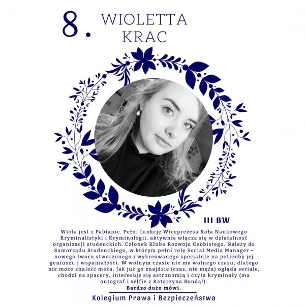 8. Krac Wioletta – III rok studiów I stopnia na kierunku „bezpieczeństwo wewnętrzne”