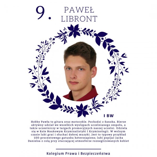 9. Libront Paweł – I rok studiów I stopnia na kierunku „bezpieczeństwo wewnętrzne”