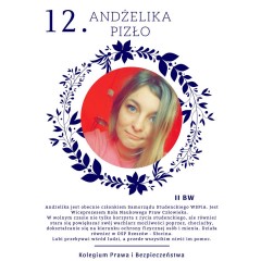 12. Pizło Andżelika – II rok studiów I stopnia na kierunku „bezpieczeństwo wewnętrzne”