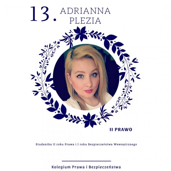 13. Plezia Adrianna – II rok studiów na kierunku „prawo”