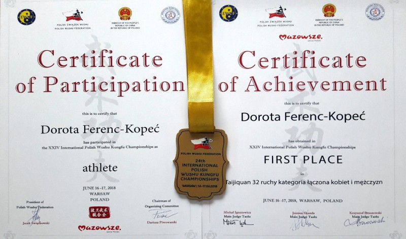 W tym roku pokazy swoich umiejętności przygotowała także dr Dorota Ferenc-Kopeć, wykładowca WSPiA Rzeszowskiej Szkoły Wyższej, reprezentująca Rzeszowski Klub Sportowy „Nan Bei – Tygrys”. Pani doktor perfekcyjnie zaprezentowała tradycyjny chiński system ćwiczeń, zdobywając dwa medale. Złoty i tytuł mistrza Polski w formie taijiquan 32 ruchy w kategorii łączonej kobiet i mężczyzn. Drugi medal to srebro i tytuł wicemistrza w formie taijiquan 40 ruchów w kategorii kobiet i mężczyzn. Przypomnijmy, że w ubiegłym roku dr Dorota Ferenc-Kopeć wywalczyła srebrny medal i tytuł wicemistrza Polski seniorek w Tai-Chi w formach obligatoryjnych 24 i 40.
